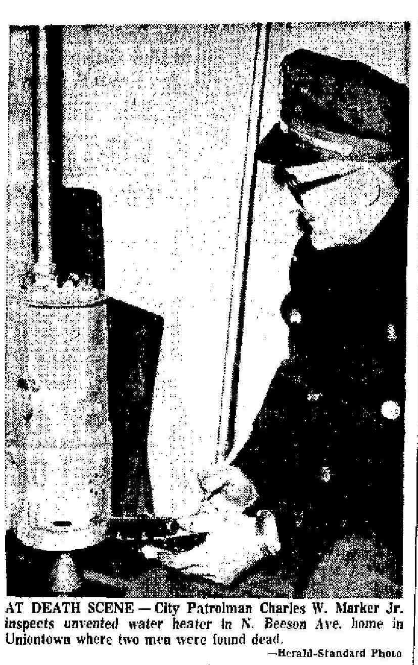 City police said the deadly gas was created from an unvented hot water tank in the bathroom. According to police, three members of the McCaffrey family came to the police station shortly before 6 p.m. and told authorities they knocked at the locked door of their father s home but received no response. Police wer dispatched in the scene and gained entry through a kitchen window. The bodies of the two men were found on a bed. From the appearance of the room, police theorized that McCaffrey and Zaucha had been drinking and fell asleep on the bed. Due to the cold weather, the windows of the three-room brick structure were closed, locking the deadly fumes in the home. The hot water heater was located near a wall separating the bedroom and the bathroom. There was a small opening in the wall directly above the heater. Police said McCaffrey lived alone in the house. His family resides at 3 Hadden Place.