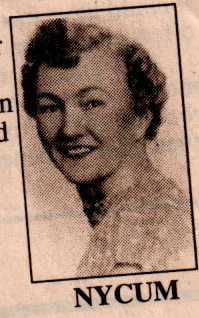 Mrs. Emma Nycum, aged 66, wife of Charles E. Nycum, died at her home on Wilson avenue on Saturday afternoon at 12:45, after a lingering illness. She is survived by her husband and two sons, Charles Henry, at home, and George W. of Gray s Landing, also the following sisters: Mrs. James Jenkins, of Smithfield; Mrs. J. A. Moser, of .., .. Swaney of Haydentown. Services will be held from her late home, No. 37 Wilson avenue, at . o clock, Monday with interment in the Oak Grove cemetery.