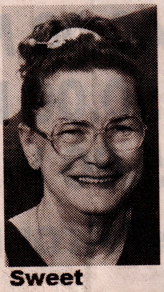 Eleanor (Riess) Sweet, age 68, died unexpectedly at her home in Smithfield, Pa., on Thursday, August 23, 2012 and went to be with her Lord Jesus Christ. Eleanor was born on February 11, 1944 in Longview, Washington the daughter of Anthony Reiss and Regina (Wessels) Reiss. Preceding her in death were her parents, three sisters and one brother. Eleanor was a very faithful member of the Bethel Baptist Church of Uniontown, Pa. She was co-owner operator of Jim Sweet Appliance Repair. She was a very avid bowler at Manor Lanes in Hopwood. Surviving are her loving husband of 51 years, Jim Sweet; three children, Anita Warnick and husband Bob of Colonial Beach, Virginia, Marilyn Sweet at home and Timothy Sweet of Los Angeles, California, four grandchildren: Alyse, Michael, Connor and Emily Warnick; and one brother, Edward Reiss and wife Carol of Decatur, Illinois. The family will receive friends in the DEAN C. WHITEMARSH FUNERAL HOME, 134 West Church Street, Fairchance, Pa., today from 2 to 4 and 7 to 9 p.m. and on Tuesday, August 28, 2012 until 11 a.m., the hour of Service with Pastor Bryan Kelley officiating. Interment will follow in Walnut Hill Cemetery, Georges Township, Pa. In lieu of Flowers, Eleanor Sweet s memorial contributions may be made to the Bethel Baptist Church of Uniontown, 998 North Gallatin Avenue Extension, Uniontown, PA 15401.