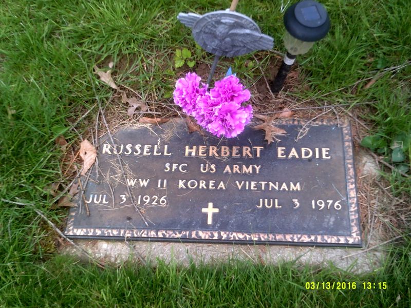 - Eadie, Russell Herbert 1926-1976. Lafayette MG, Old Vets, Redstone Twp.; Contributor: Randy Knight