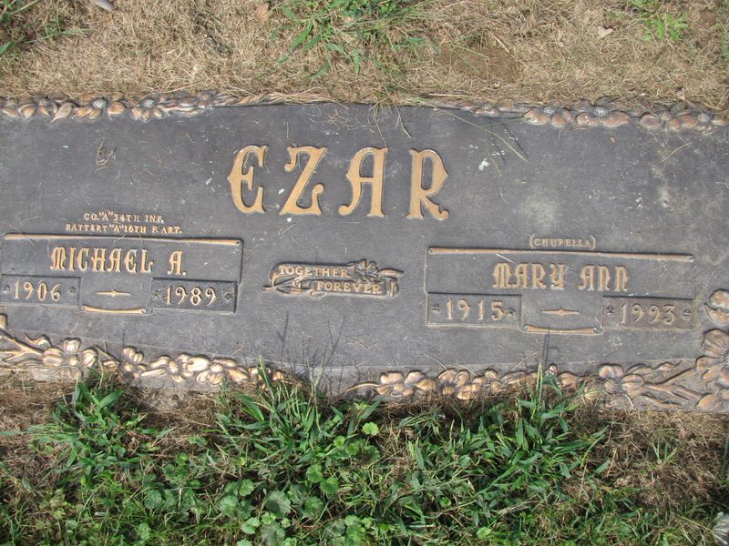 - Ezar, Mary Ann Chupella 1915-1993. Lafayette MG, Gdn of Fountain/Block A, Redstone Twp.; Contributor: Rich Tate