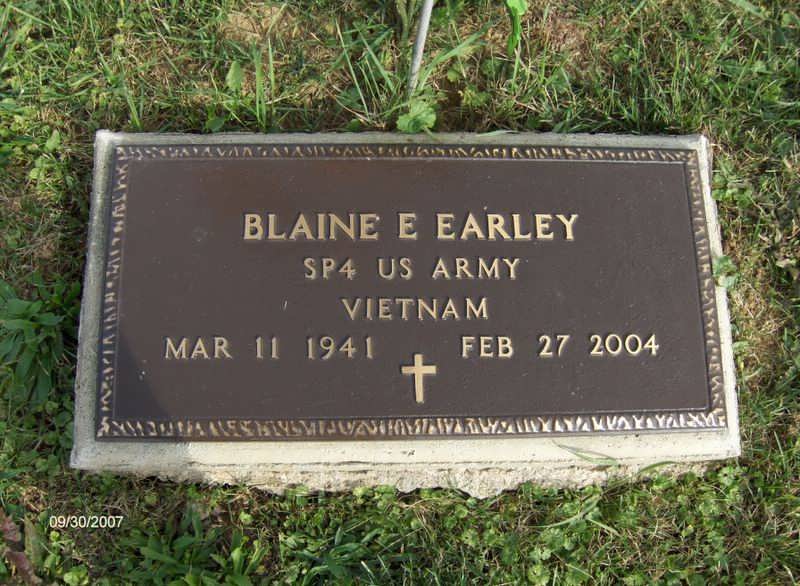 - Earley, Blaine E. 1941-2004. Walnut Hill Meth. Cem., Georges Twp. Contributor: Lanny Golden