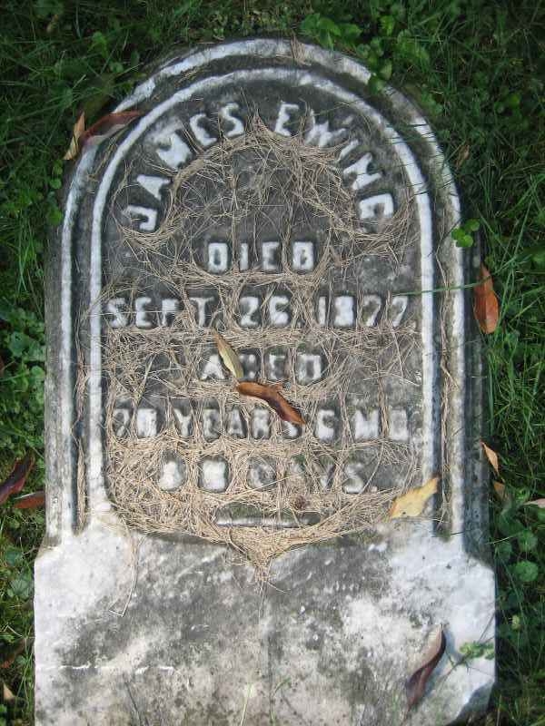 - Ewing, James Died 1877. Oak Grove Cem., S. Union Twp. Contributor: Jack McNees