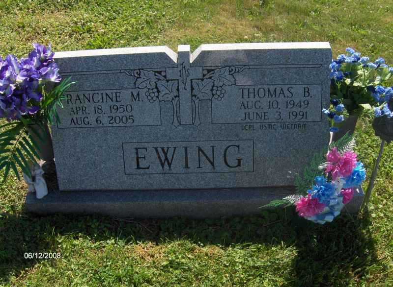 - Ewing, Francine M. 1950-2005. McClellandtown Pres. Cem., German Twp. Contributor: Lanny Golden