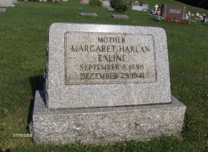 - Exline, Margaret Harlan 1880-1941. Indian Creek Bapt. Cem., Springfield Twp. Contributor: Lanny Golden