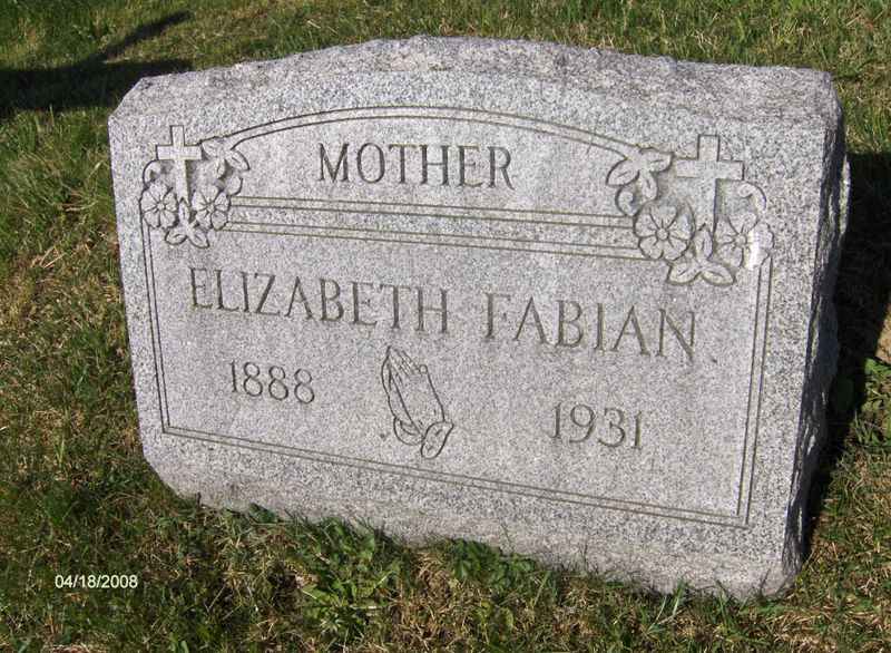 - Fabian, Elizabeth 1888-1931. St. Josheph's RC, Georges Twp.; Contributor: Lanny Golden