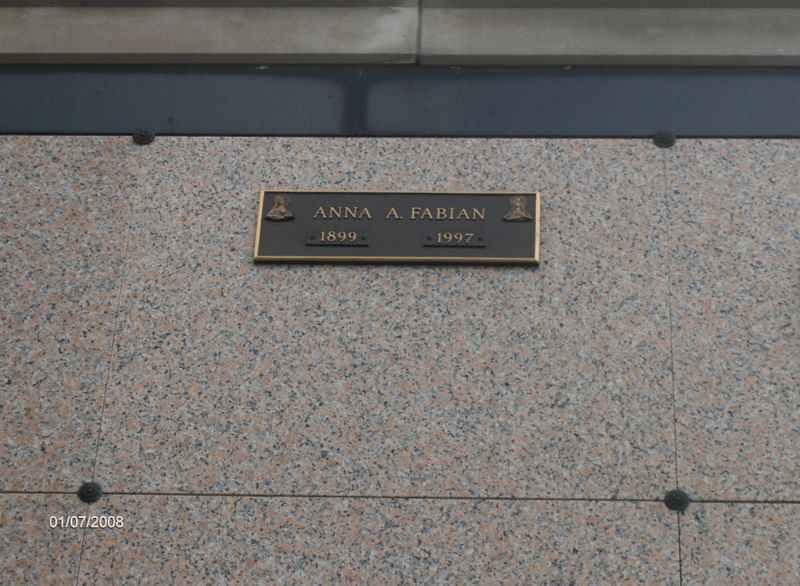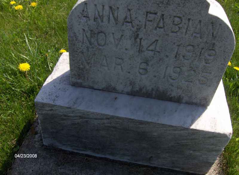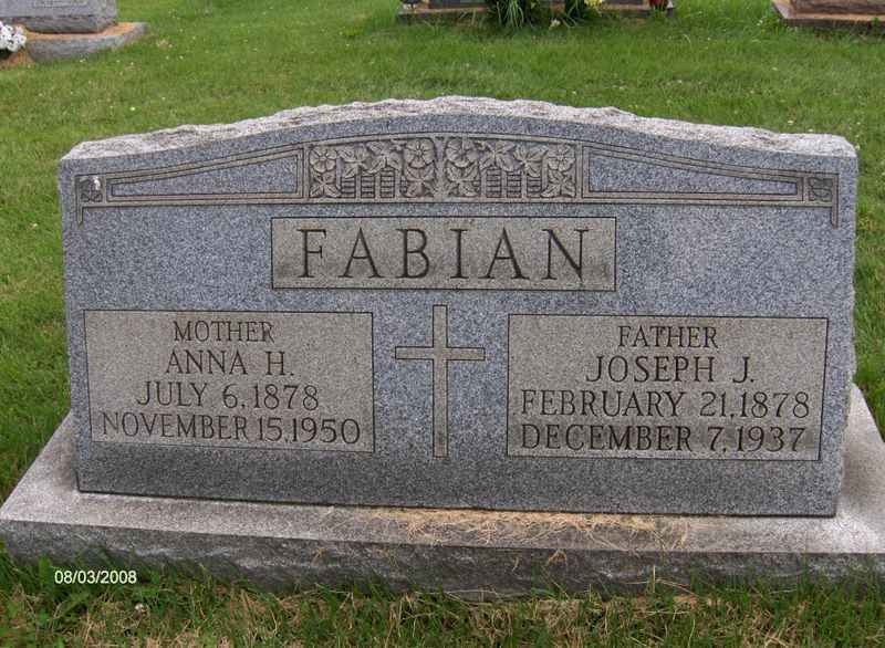 - Fabian, Anna A. 1899-(blank). St. Mary's RC Cem., N. Union Twp. Contributor: Lanny Golden