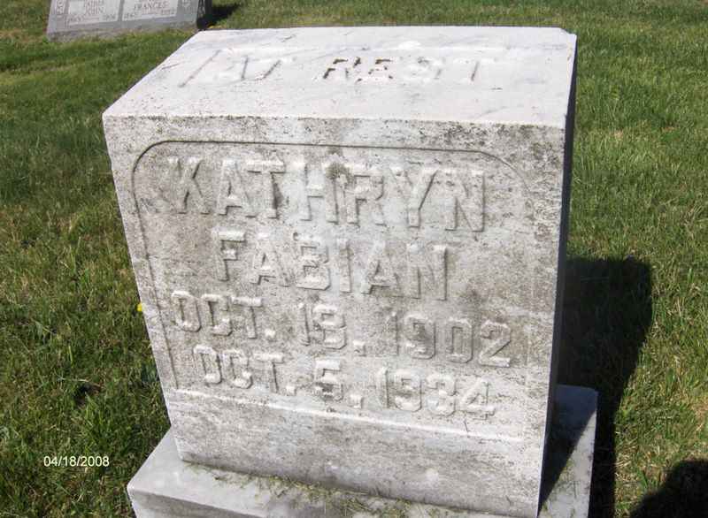 - Fabian, Kathryn 1902-1934. St. Josheph's RC, Georges Twp.; Contributor: Lanny Golden