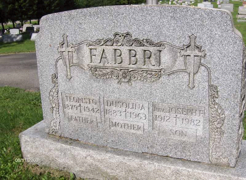 - Fabbri, Joseph F. 1912-1982. St. Agnes RC Cem., German Twp. Contributor: Lanny Golden
