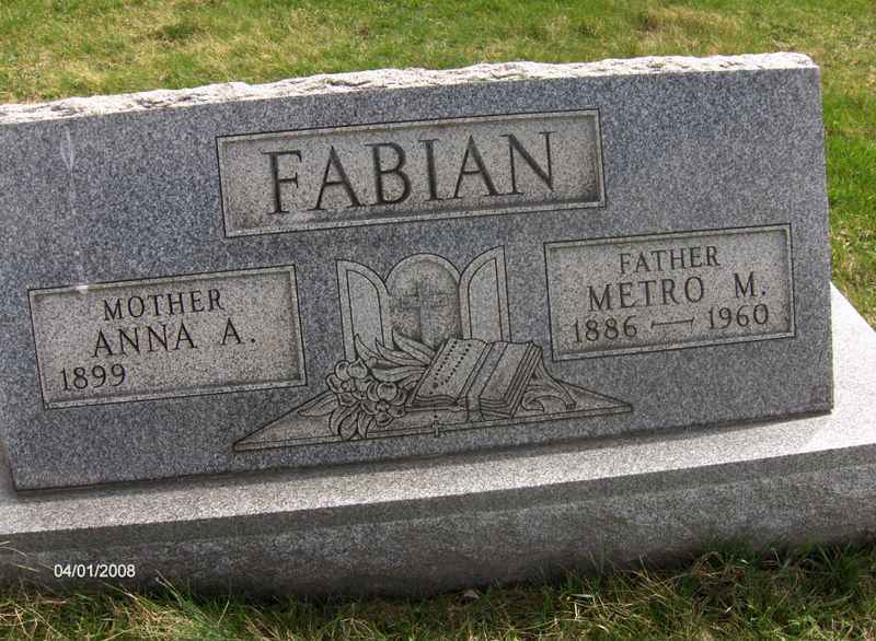 - Fabian, Metro M. 1886-1960. St. Mary's RC Cem., N. Union Twp. Contributor: Lanny Golden