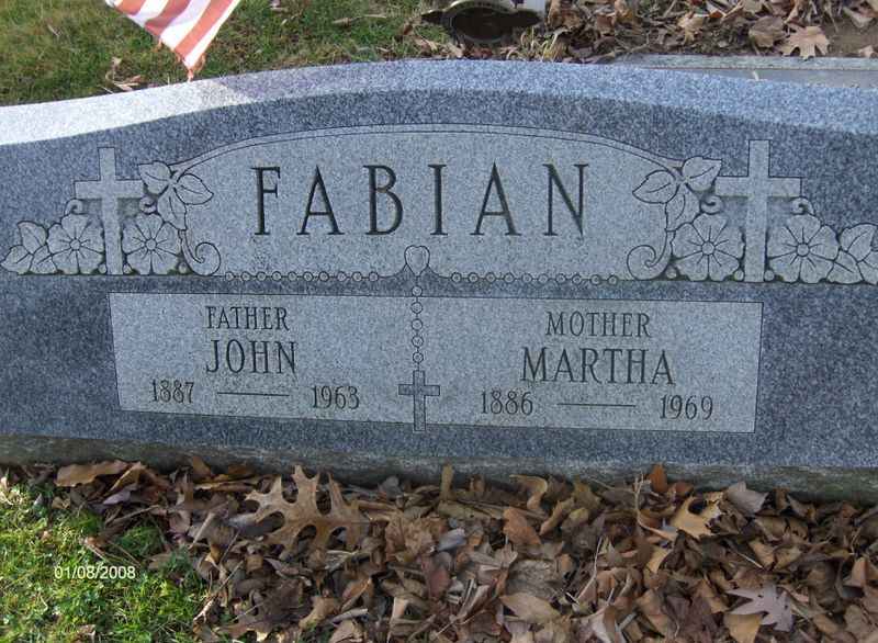 - Fabian, John A. 1889-1969. St. Josheph's RC, Georges Twp.; Contributor: Lanny Golden