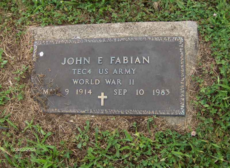 - Fabian, John E. 1919-1978. Maple Grove Cem., Georges Twp. Contributor: Lanny Golden