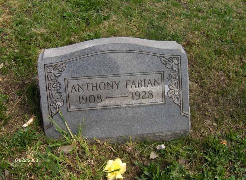 - Fabian, Anthony 1908-1928. St. Rita's RC Cem., Connellsville Twp. Contributor: Lanny Golden