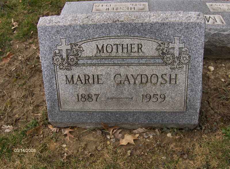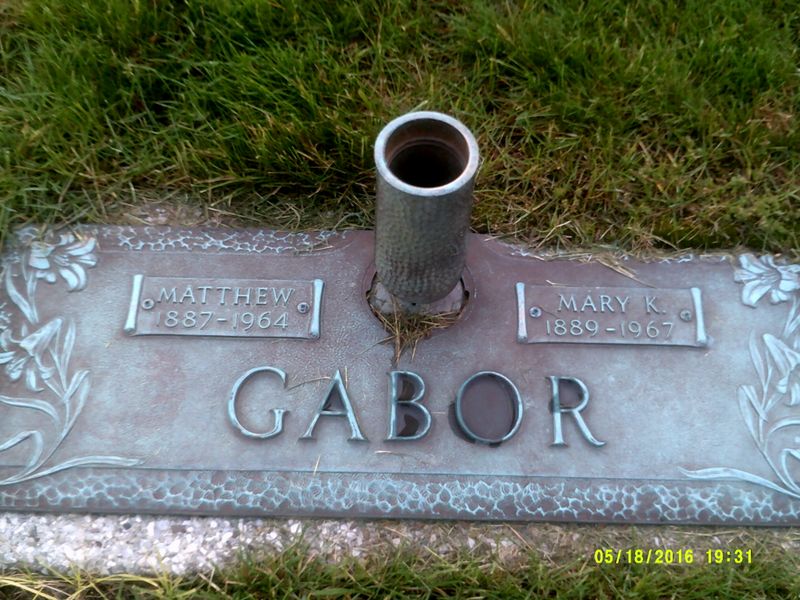 - Gabor, Mary K. 1889-1967. Lafayette MG, Block F, Redstone Twp.; Contributor: Randy Knight
