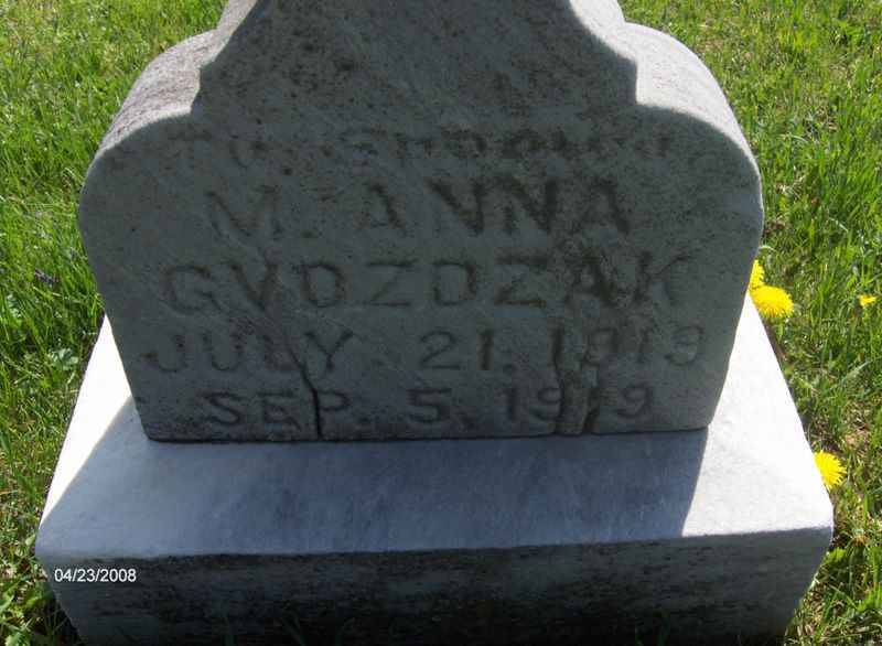 - Gvozdzak, M. Anna 1919-1919. St. Josheph's RC, Georges Twp.; Contributor: Lanny Golden