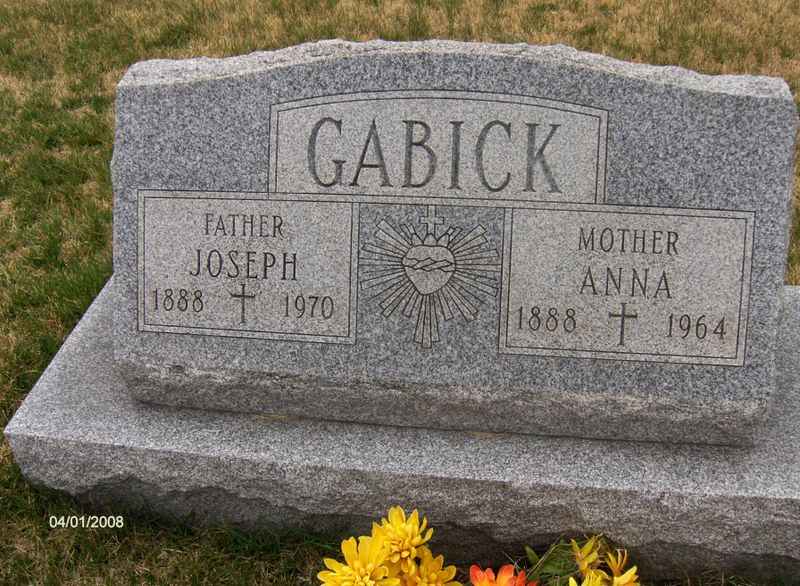 - Gabick, Joseph 1888-1970. St. Mary's RC Cem., N. Union Twp. Contributor: Lanny Golden