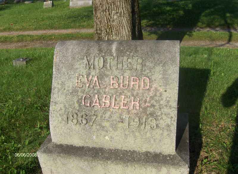 - Gabler, Eva Burd 1867-1918. Redstone Cem., Brownsville. Contributor: Lanny Golden