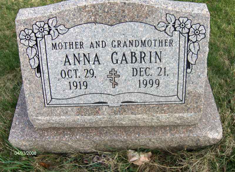 - Gabrin, Anna 1919-1999. St. John Byzantine Cem., N. Union Twp. Contributor: Lanny Golden
