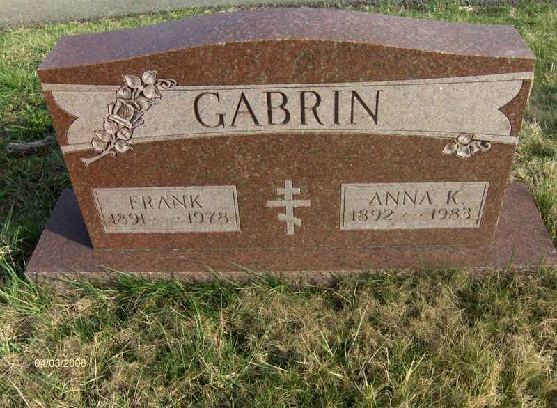 - Gabrin, Anna K. 1892-1983. St. John Byzantine Cem., N. Union Twp. Contributor: Lanny Golden