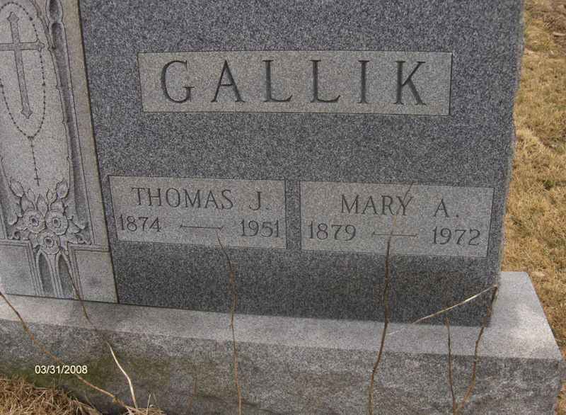 - Gabick, Anna 1888-1964. St. Mary's RC Cem., N. Union Twp. Contributor: Lanny Golden