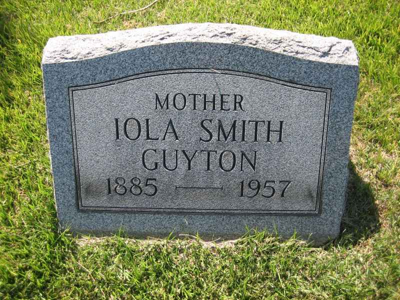 - Guyton, Iola Smith 1885-1957. Oak Grove Cem., S. Union Twp. Contributor: Jack McNees