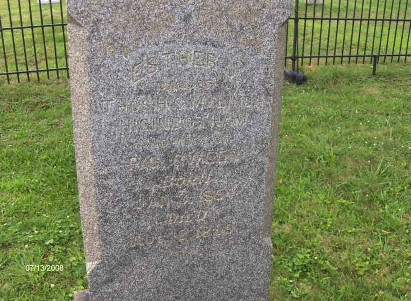 - Gween, Esther J. Higinbotham 1854-1889. Pleasant View Pres. Cem., Franklin Twp. Contributor: Lanny Golden