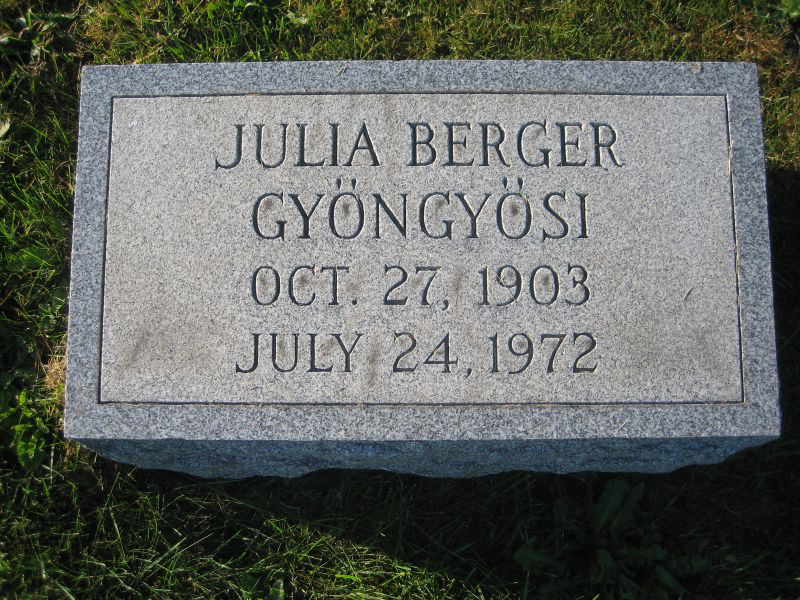 - Gyongyosi, Julia Berger 1903-1972. Oak Lawn Cem., S. Union Twp. Contributor: Jack McNees
