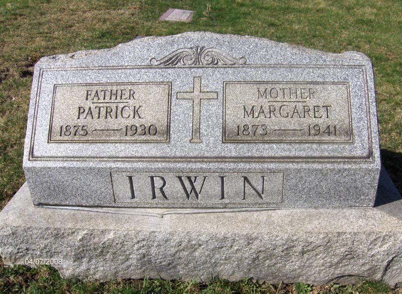 - Irwin, Patrick 1875-1930. St. Josheph's RC (New), Connellsville Twp.; Contributor: Lanny Golden