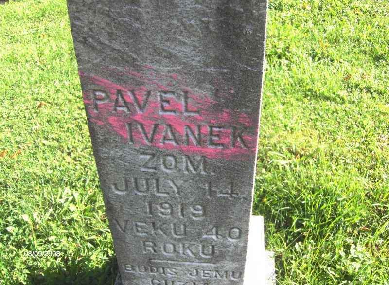 - Ivanek, Pavel (blank)-1919. St. Mary's RC Cemetery, German Twp.; Contributor: Lanny Golden
