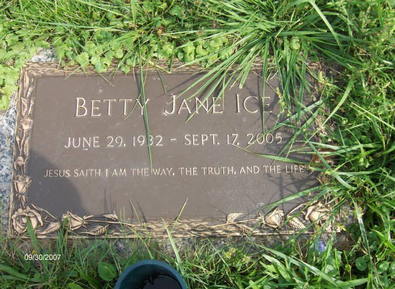 - Ice, Betty Jane 1932-2005. Walnut Hill Meth. Cem., Georges Twp. Contributor: Lanny Golden