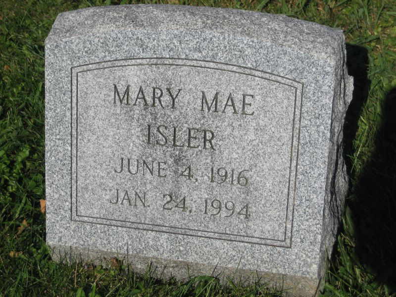 - Isler, Mary Mae 1916-1994. Oak Grove Cem., S. Union Twp. Contributor: Jack McNees