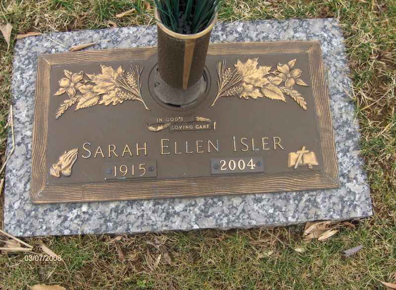 - Isler, Sarah Ellen 1915-2004. Sylvan Heights Cem., N. Union Twp. Contributor: Lanny Golden