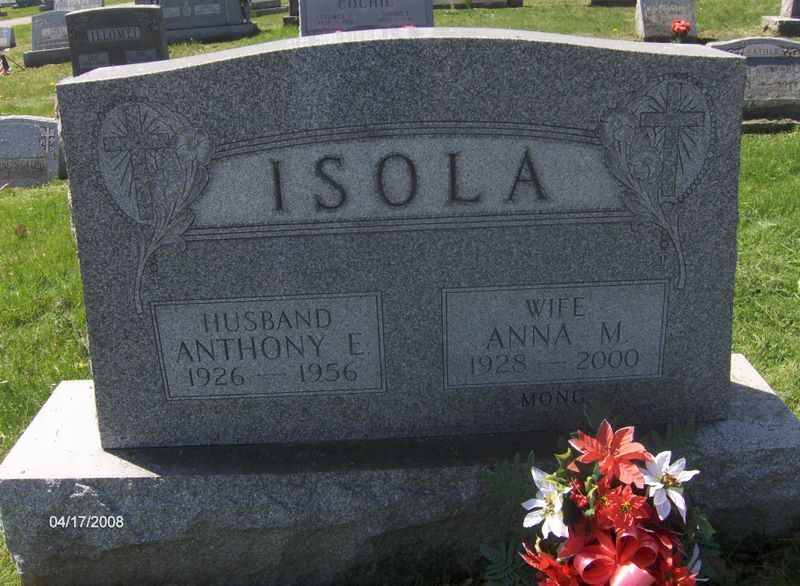 - Isola, Anthony E. 1926-1956. St. Rita's RC Cem., Connellsville Twp. Contributor: Lanny Golden
