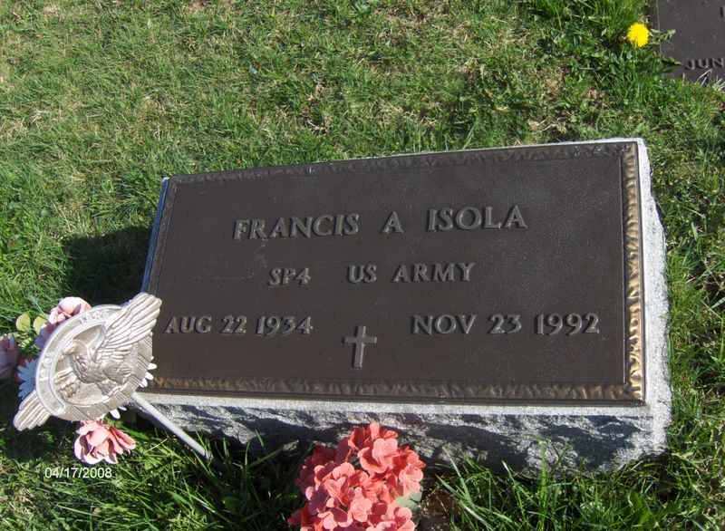 - Isola, Francis A. 1934-1992. St. Rita's RC Cem., Connellsville Twp. Contributor: Lanny Golden