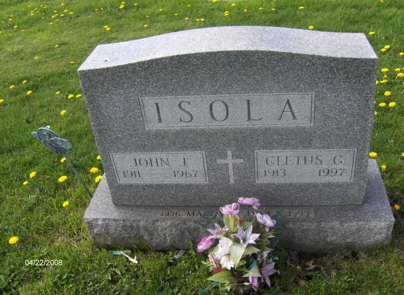 - Isola, Cletus G. 1913-1997. St. Rita's RC Cem., Connellsville Twp. Contributor: Lanny Golden