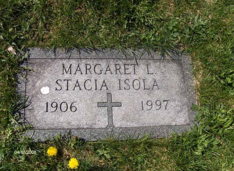- Isola, Margaret L. Stacia 1906-1997. St. Rita's RC Cem., Connellsville Twp. Contributor: Lanny Golden