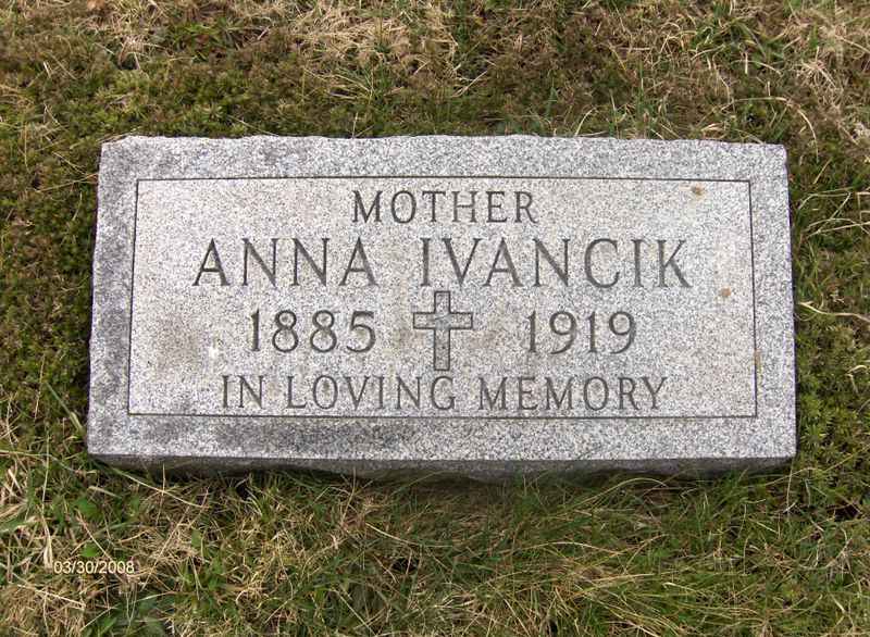 - Ivancik, Anna 1885-1919. St. Mary's RC Cem., N. Union Twp. Contributor: Lanny Golden