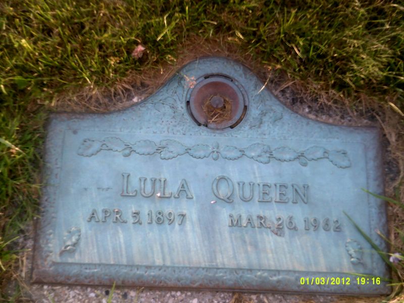 - Queen, Lula 1897-1962. Lafayette MG,Garden of Devotion, Redstone Twp.; Contributor: Randy Knight