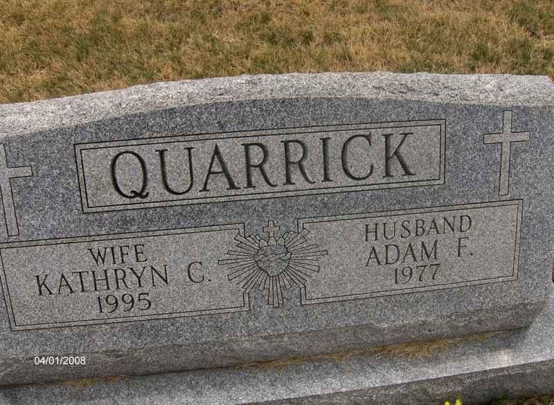 - Quarrick, Adam F. Died 1997. St. Mary's RC Cem., N. Union Twp. Contributor: Lanny Golden