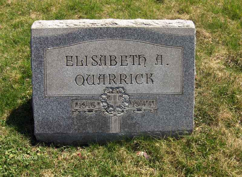 - Quarrick, Elisabeth A. 1916-1944. St. Mary's RC Cem., N. Union Twp. Contributor: Lanny Golden