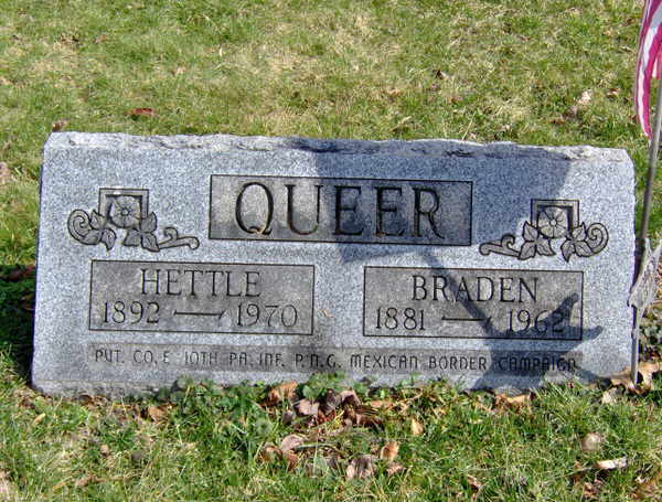 - Queer, Braden 1881-1962. Greenlick Cem., Bullskin Twp. Contributor: David Braden