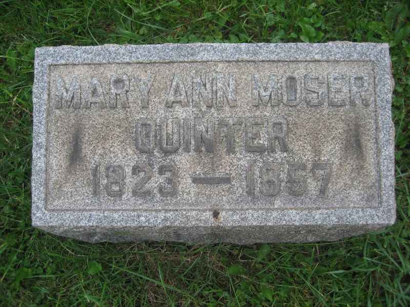 - Quinter, Mary Ann Moser 1823-1857. Oak Grove Cem., S. Union Twp. Contributor: Jack McNees