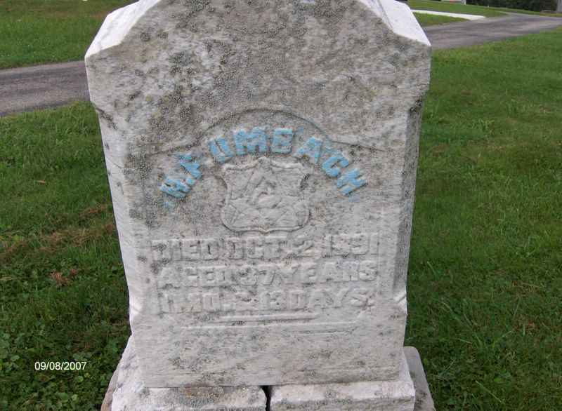 - Uber, Clark Edgar 185?-1916. Greenlick Cem., Bullskin Twp. Contributor: Lanny Golden