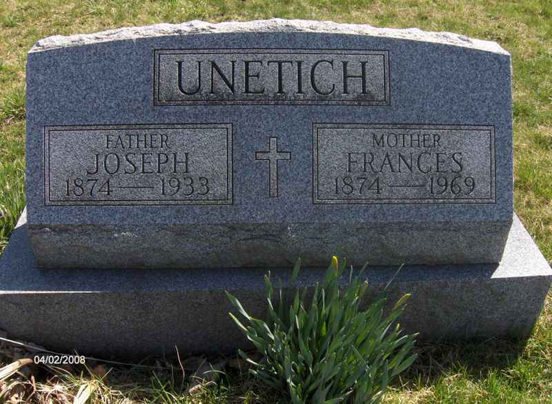 - Urinich, Frank Jr. 1885-1962. St. Agnes RC Cem., German Twp. Contributor: Lanny Golden