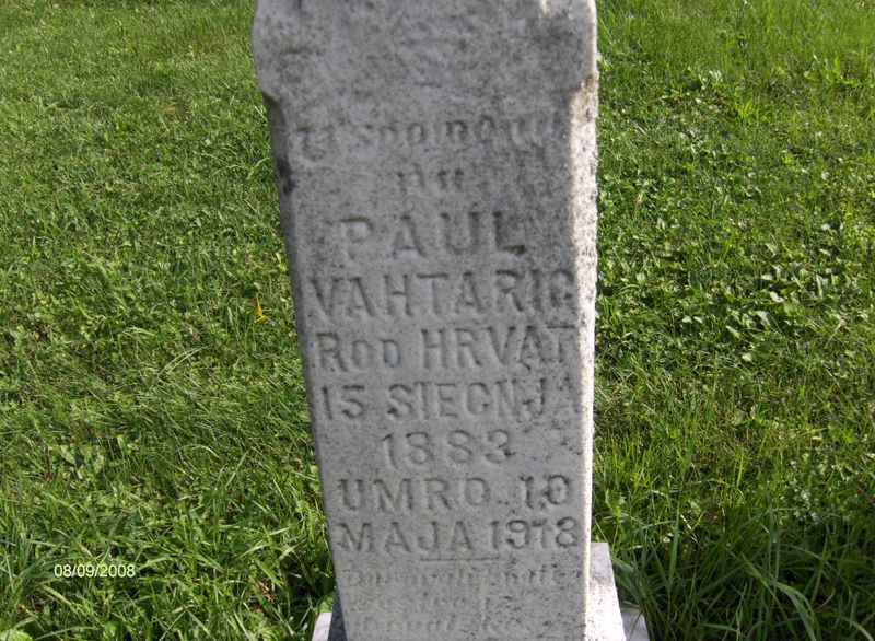 - Vahtaric, Paul 1883-1918. St. Mary's RC Cemetery, German Twp.; Contributor: Lanny Golden