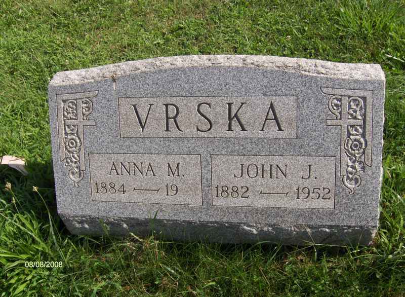 - Vrska, John J. 1882-1952. St. Mary's RC Cemetery, German Twp.; Contributor: Lanny Golden