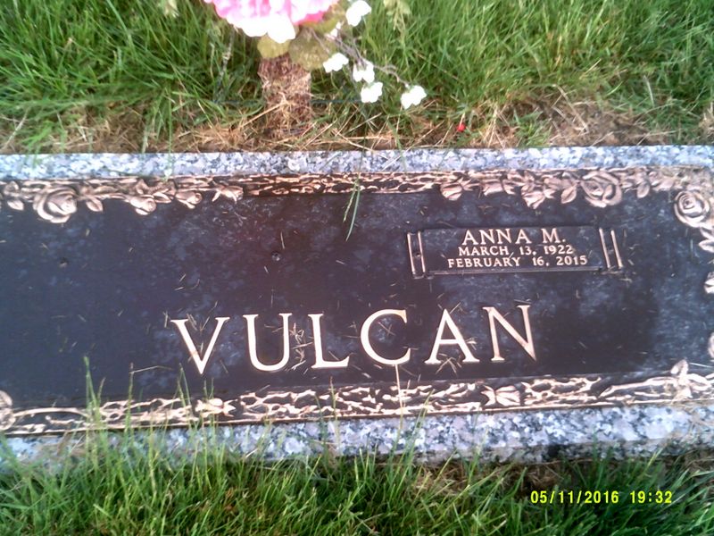- Vulcan, Anna M. 1922-2015. Lafayette MG, Garden of St. Luke, Redstone Twp.; Contributor: Randy Knight