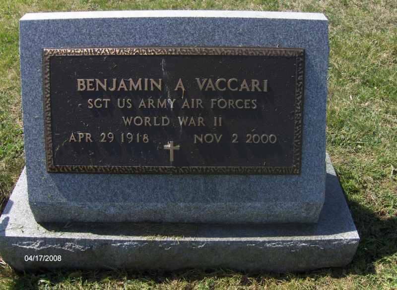 - Vaccari, Benjamin A. 1918-2000. St. Rita's RC Cem., Connellsville Twp. Contributor: Lanny Golden