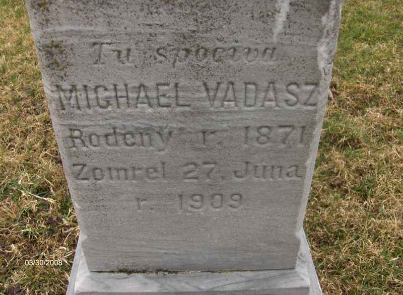 - Vadasz, Michael 1871-1909. St. Mary's RC Cem., N. Union Twp. Contributor: Lanny Golden