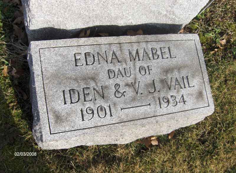 - Vail, Edna Mabel 1901-1934. Sylvan Heights Cem., N. Union Twp. Contributor: Lanny Golden